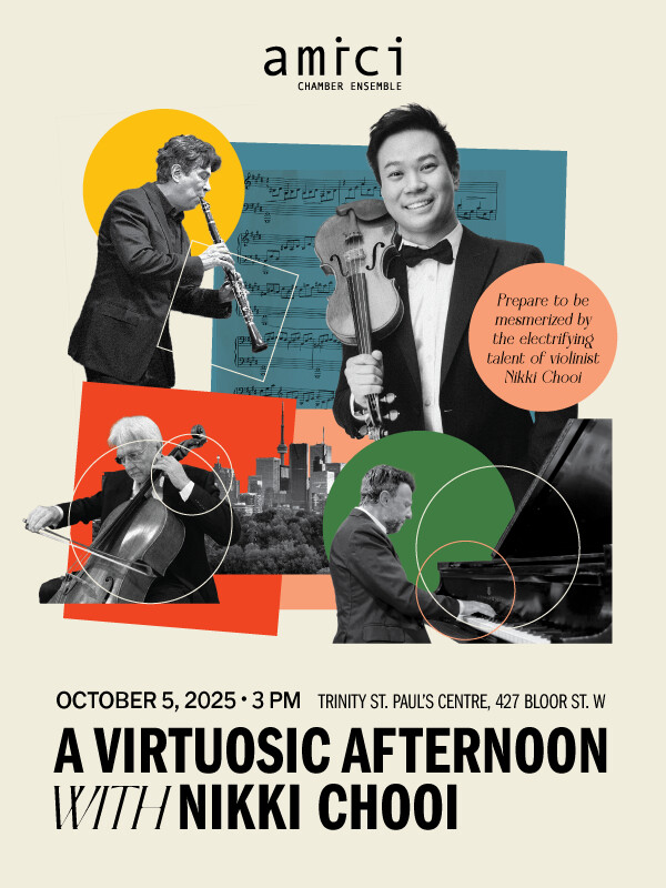 At Trinity St. Paul’s Centre, the Amici Chamber Ensemble and guest violinist Nikki Chooi delivered a radiant afternoon of friendship and musicianship — blending Bach’s timeless genius, Sarasate’s romantic flair, and Coleridge-Taylor’s rediscovered gem into one inspired concert.